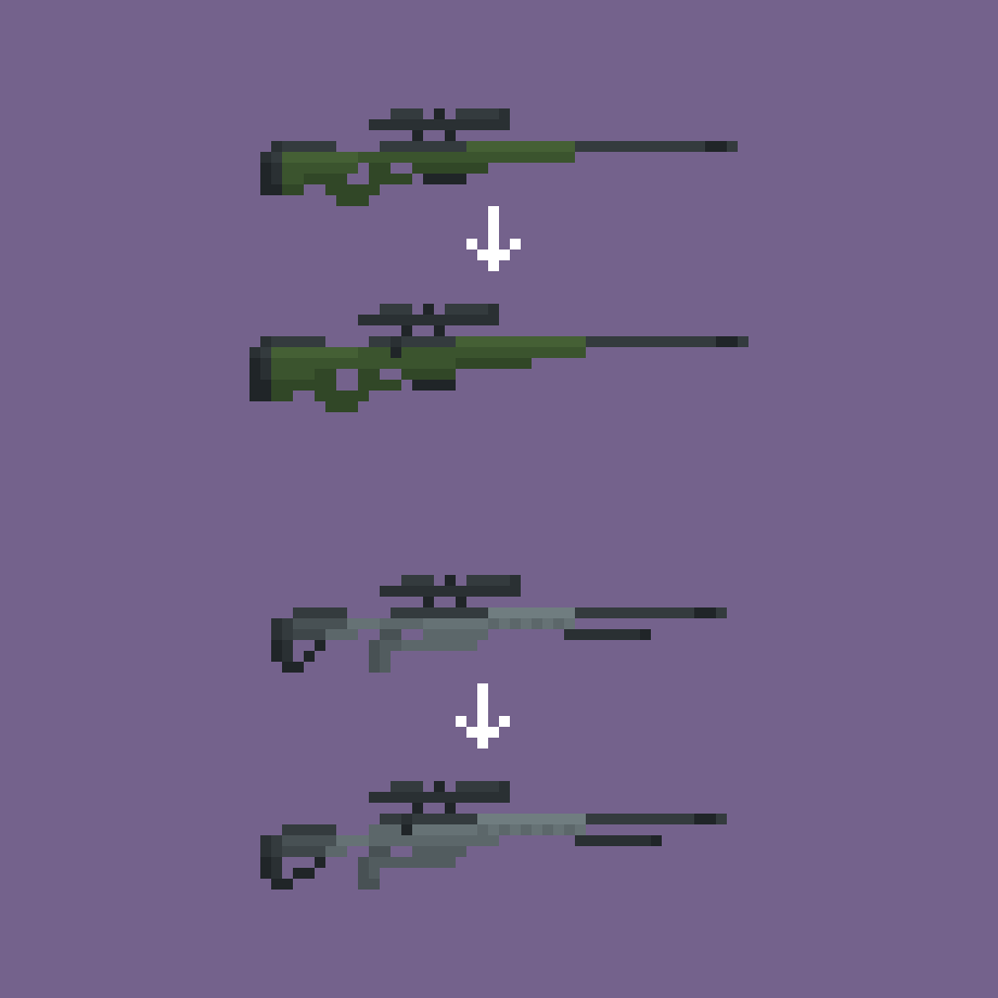 Tags | 2D, guns, Icons, Minimalist, Pixel Art, Sprites, War, Weapons |